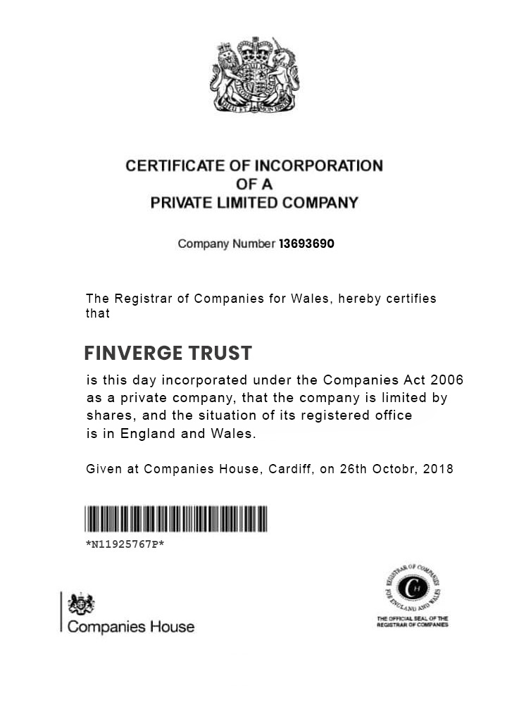 FINVERGE TRUST is registered and has official permission for investment and trading activities. The services of our company are available to every investor from anywhere in the world.